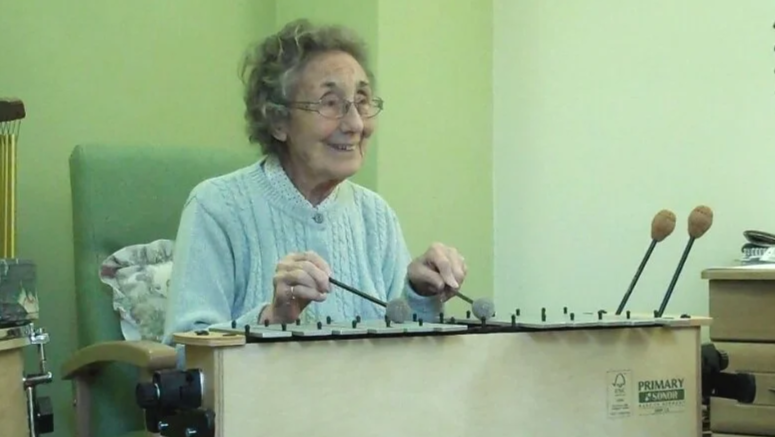 From a music therapist's account of working with a lovely lady: The previous week Joyce, who had Alzheimer’s disease, was very confused about living in the care home and was experiencing feelings of anxiety and paranoia. As I sung her name for the second time I watched her eyes lift and it felt as if something had changed within her. Joyce became very playful, articulate, and started to take risks musically. By the end of the session Joyce had taken the lead in our music. Joyce recognised that the dynamic level of our music had dropped and responded accordingly until we joined together in an improvised but very much attuned and empathic ending together. This shows the potential of music to bring moments of joy to those living with dementia who may often feel isolated and anxious. By using music Joyce was able to forge a new meaningful relationship and build confidence in trying new things at this late stage in her life.